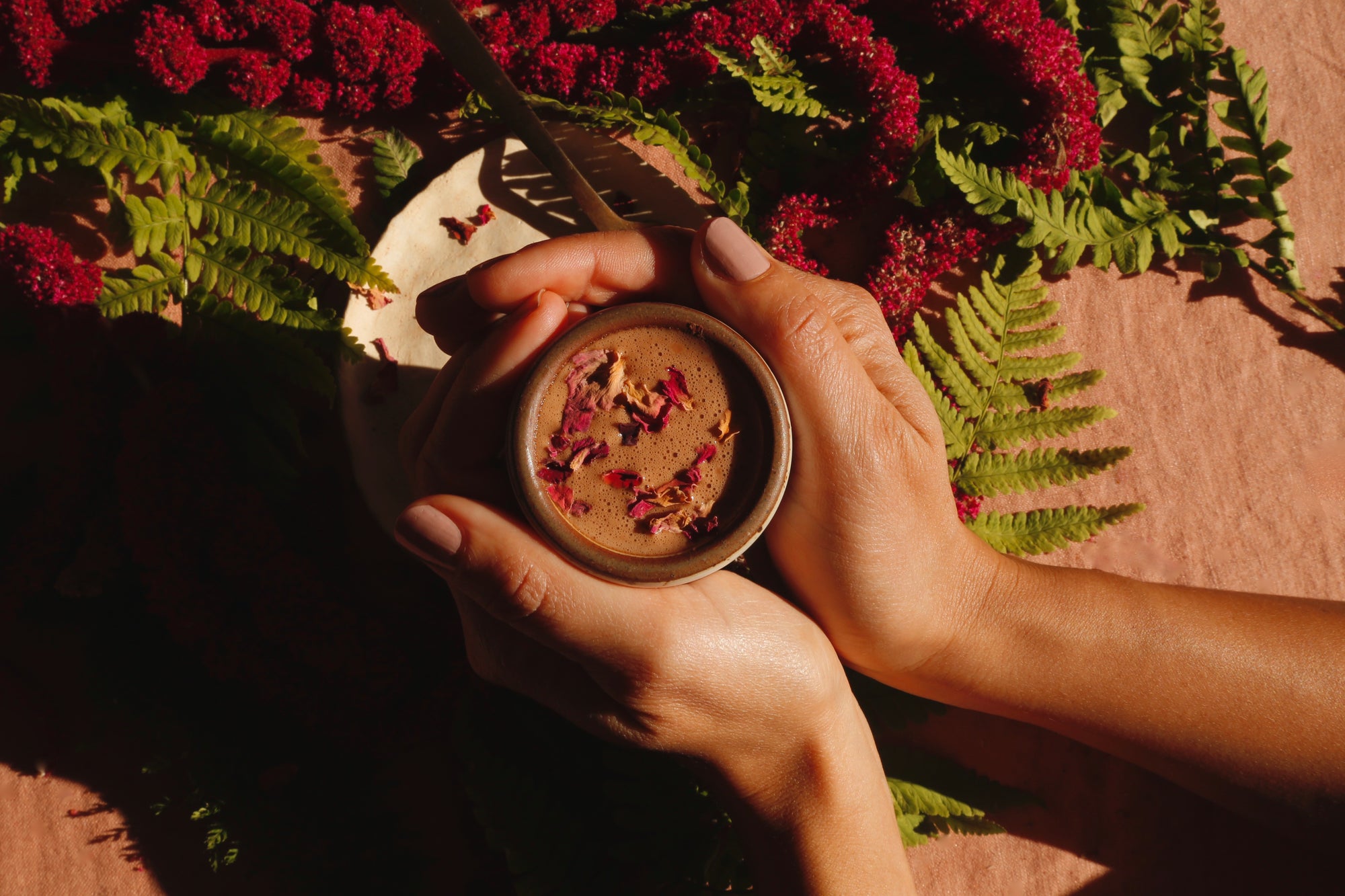 In a large mug, mix 2 Tbsp cacao with 1/2 cup boiling water or heated milk of your choice. Add a dash of sweetener if desired. Blend with immersion blender until rich & creamy. Sip in meditation, listen with the heart.