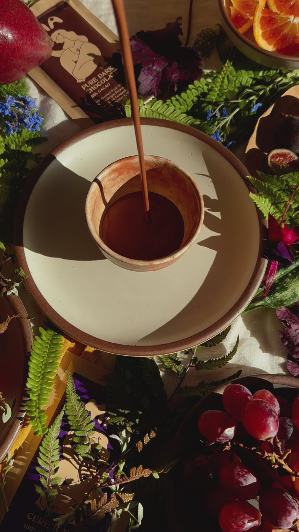 Experience our classic handcrafted drinking chocolate, with bold tasting notes of cherry, caramel, and coffee. A powerful drinking chocolate to connect to the earth, heart, and spirit.